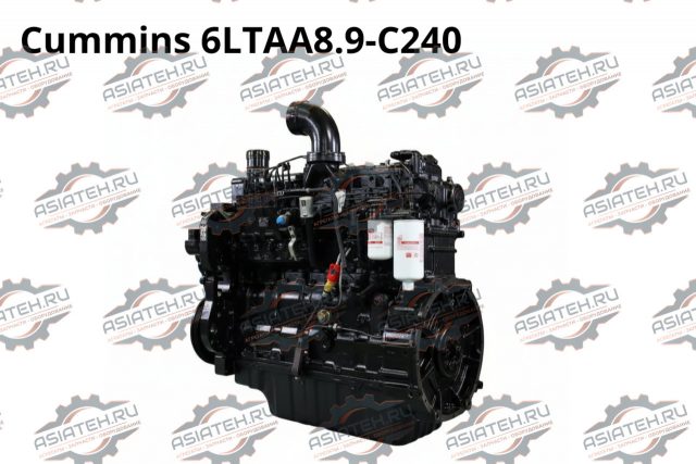 Дизельный двигатель Cummins 6LTAA8.9-C240 представляет собой шестицилиндровый рядный четырехтактный силовой агрегат с рабочим объемом 8,9 литра, развивающий номинальную мощность 179 кВт (240 л.с.) при 2200 об/мин и максимальный крутящий момент 1180 Н·м при 1400 об/мин. Двигатель оснащен системой турбонаддува с промежуточным охлаждением воздуха типа air-to-air, механической топливной системой высокого давления Weifu PW2000 с механическим регулятором RSV и жидкостной системой охлаждения. Степень сжатия составляет 16,6:1, диаметр цилиндра 114 мм, ход поршня 145 мм. Удельный расход топлива на номинальном режиме не превышает 199 г/кВт·ч. Двигатель отличается высокой надежностью, увеличенным межсервисным интервалом до 400 моточасов и ресурсом до капитального ремонта 15000-20000 моточасов. Масса двигателя составляет 650 кг, габаритные размеры 1550×950×1450 мм.