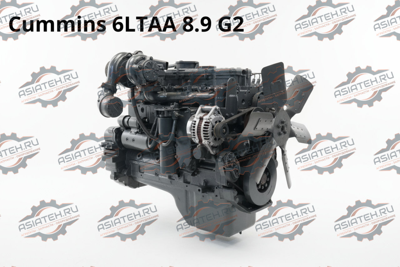 Cummins 6LTAA8.9-G2 представляет собой специализированный 6-цилиндровый рядный дизельный двигатель рабочим объёмом 8,9 литра, разработанный для генераторных применений с частотой 50 Гц при 1500 об/мин. Номинальная мощность составляет 220 кВт (295 л.с.), резервная мощность 240 кВт (322 л.с.), крутящий момент 1401-1528 Н·м. Двигатель оснащён системой турбонаддува с промежуточным охлаждением воздуха типа air-to-air, топливной системой высокого давления BYC P7100 с электронным регулятором GAC ASIMCO, обеспечивающим стабильность частоты вращения с отклонением 5%. Конструкция включает усиленный чугунный блок цилиндров с диаметром цилиндра 114 мм и ходом поршня 145 мм, степень сжатия 16,6:1. Система смазки имеет ёмкость 27,6 литра, система охлаждения — 11,1 литра (только двигатель). Удельный расход топлива составляет 197 г/кВт·ч при номинальной нагрузке. Двигатель соответствует экологическому стандарту Euro II. Компактные габариты 1149×799×1022 мм и масса 650 кг обеспечивают удобство установки в генераторные установки. Ресурс до капитального ремонта достигает 12 000-15 000 моточасов.