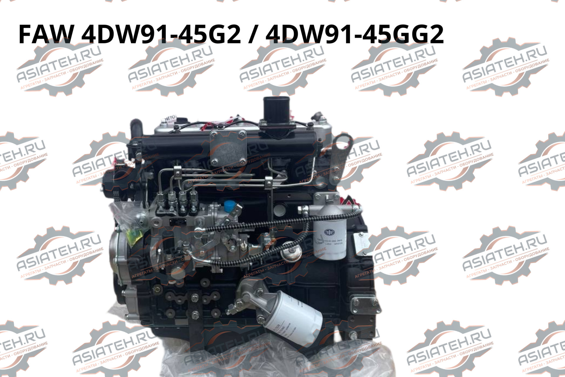 FAW 4DW91-45G2 — дизельный четырехцилиндровый двигатель с рабочим объемом 2,54 литра и номинальной мощностью 33 кВт (44,87 л.с.) при 2300–2400 об/мин. Отличается надежностью, низким расходом топлива (230–238 г/кВт·ч), высоким крутящим моментом до 155 Н·м и компактными габаритами 875×523×747 мм при массе 230 кг. Двигатель оснащен системой жидкостного охлаждения, рядным ТНВД и механическими форсунками, соответствуя экологическому классу Евро-2. Применяется во многих видах спецтехники, оптимален для условий тяжелой эксплуатации благодаря прочной конструкции, простоте обслуживания и ресурсу до 10 000 моточасов.