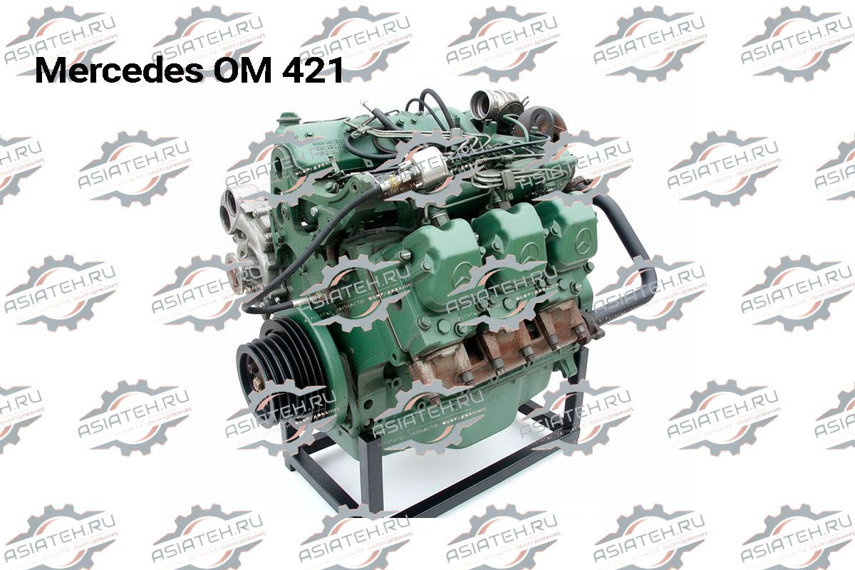 Mercedes OM421 — дизельный V6 двигатель серии OM300 с рабочим объемом около 11 литров, рассчитан на длительную работу в тяжёлых условиях, таких как дорожная техника и среднетоннажные грузовики. Он оснащён системой турбонагнетателя и форкамерным впрыском с механическим ТНВД, что обеспечивает высокий крутящий момент и стабильную мощность 216 л.с. при низких оборотах. Надежность, экономичность и большой ресурс делают его востребованным для промышленной и сельскохозяйственной техники, а также автобусов и спецмашин, особенно в климатических условиях с высоким износом двигателя.
