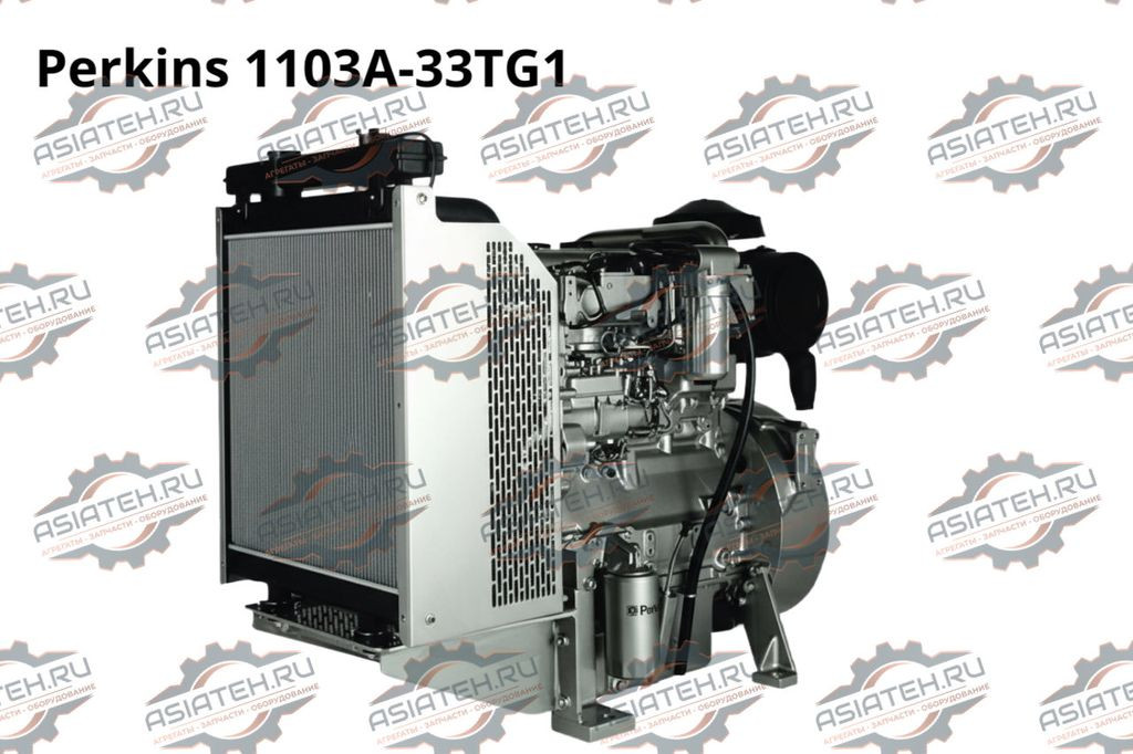 Perkins 1103A-33TG1 — 3-цилиндровый рядный дизельный двигатель объемом 3,3 литра с турбонаддувом и водяным охлаждением. Обеспечивает номинальную мощность 42,2 кВт (57 л.с.) при 1500 об/мин и резервную мощность 45,6 кВт (61,2 л.с.). Высокая степень сжатия 17,25:1 и эффективная топливная система обуславливают экономичный расход топлива около 205 г/кВт·ч, с расходом от 5,83 до 10,8 л/ч при нагрузках от 50% до 100%. Масляная система объемом 7,9 литров и система охлаждения 10,2 литра обеспечивают надёжность и стабильность работы. Вес 420 кг, габариты 1049x634x951 мм.