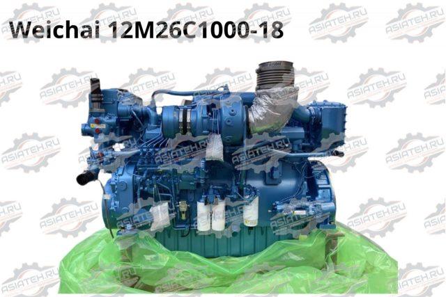 Двигатель Weichai 12M26C1000-18 является флагманской моделью в V-образной линейке на базе платформы M26, предлагая рекордную для этой серии мощность в 735 кВт (1000 л.с.) при 2100 об/мин. Этот V-образный 12-цилиндровый дизельный агрегат демонстрирует выдающуюся энергоотдачу, достигаемую за счет увеличенной степени форсировки и высокоэффективной системы турбонаддува с промежуточным охлаждением (T/C). Объединяя два блока по 6 цилиндров от базовой серии, двигатель имеет суммарный рабочий объем 21,0 литра, что при V-образной компоновке обеспечивает исключительную компактность и высокую удельную мощность.