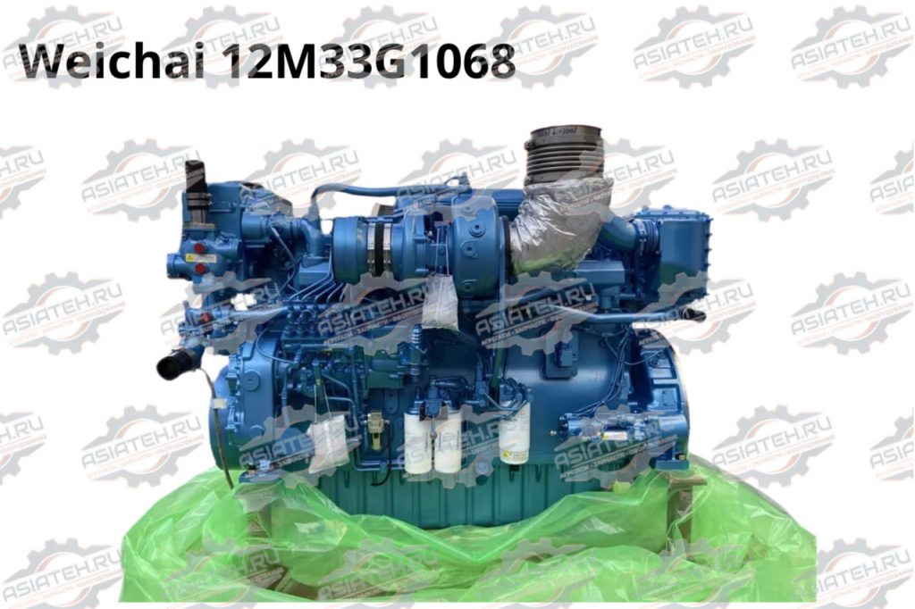 Двигатель Weichai 12M33G1068 представляет собой колоссальный V-образный 12-цилиндровый промышленный агрегат, один из самых мощных в портфолио Weichai. Его ключевой характеристикой является экстремальная номинальная мощность 1068 кВт (1452 л.с.) при 1900 об/мин. Эта мощность обеспечивается огромным рабочим объемом 66,0 литров и высокоэффективной системой турбонаддува с промежуточным охлаждением (T/C), работающей на пределе возможностей для создания необходимого давления наддува и наполнения цилиндров.