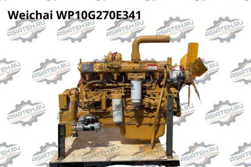 Weichai WP10G270E341 — мощный дизельный двигатель рабочим объемом 9,726 л с номинальной мощностью 199 кВт (270 л.с.) при 2200 об/мин. Шестицилиндровый рядный двигатель с турбонаддувом и промежуточным охлаждением развивает максимальный крутящий момент 1100 Н·м в диапазоне 1400-1600 об/мин. Двигатель оснащен электронно-управляемой системой подачи топлива высокого давления Common Rail и соответствует экологическим требованиям Евро-3. Конструкция с четырьмя клапанами на цилиндр обеспечивает высокую эффективность сгорания. Компактные габариты 1527×870×1870 мм при сухом весе 875 кг и удельном расходе топлива 193 г/кВт·ч делают его эффективным решением для тяжелой строительной техники.